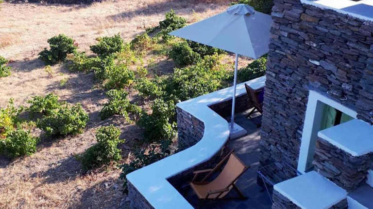 Die Artistic Cycladic Residence mit spektakulärem Panoramablick ist in Exámbela gelegen, 7,8 km vom Kloster Chrisopigi entfernt. Die Umgebung bietet eine ruhige Gartenidylle mit Blick auf die Berge.