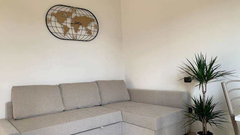 Die Ferienwohnung umfasst ein Schlafzimmer, ein Wohnzimmer, eine voll ausgestattete Küche mit Kühlschrank und Kaffeemaschine sowie ein Badezimmer mit Bidet und Dusche. Handtücher und Bettwäsche werden bereitgestellt. Die Unterkunft ist klimatisiert und bietet Nichtraucherzimmer.