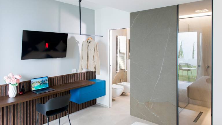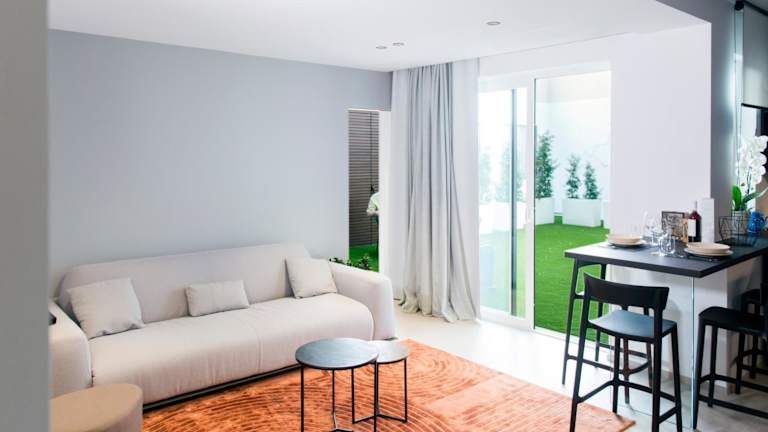 Die Ferienwohnung besteht aus einem Schlafzimmer, einem Wohnzimmer sowie einer voll ausgestatteten Küche mit einem Kühlschrank und einer Kaffeemaschine. Es sind zwei Badezimmer mit einem Bidet und einer Dusche vorhanden. Handtücher und Bettwäsche werden bereitgestellt.