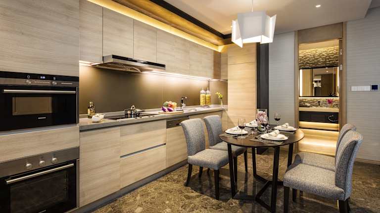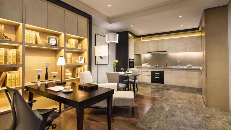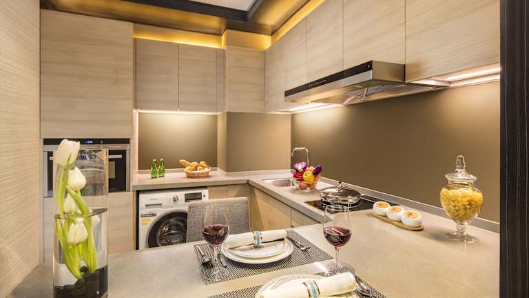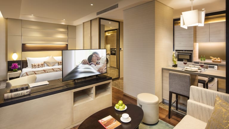 In den Zimmern stehen eine Klimaanlage, Heizung, ein Balkon sowie separate Schlafzimmer zur Verfügung. Die Einrichtung umfasst einen Safe, eine Minibar und eine Kochnische mit Mikrowelle sowie einer Tee-/Kaffeemaschine. Zur Ausstattung gehören zudem ein Bügelset, ein Telefon, Sat-TV, ein DVD-Player und kostenloses Wifi. Die Badezimmer sind mit Dusche und Badewanne ausgestattet und bieten Haartrockner sowie Bademäntel. Es gibt auch rollstuhlgerechte Zimmer mit barrierefreien Badezimmern.
