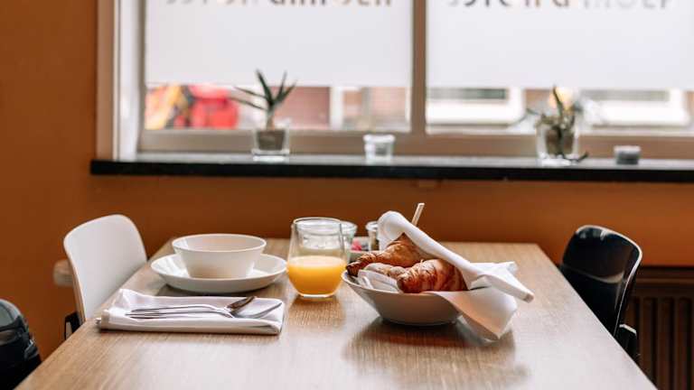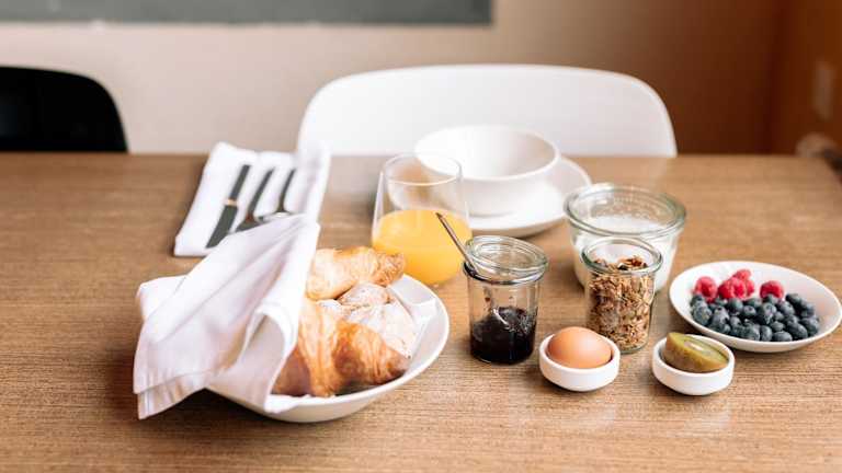 Jeden Morgen wird in der Frühstückslounge ein Buffet mit Bioprodukten angeboten. Die Bar des Hotels lockt mit einer Auswahl an Bio-Weinen und -Bieren.