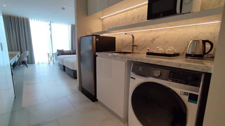 Die Zimmer im Ashley Hotel BKK sind komfortabel eingerichtet und verfügen über eine Klimaanlage, einen Sitzbereich, einen Flachbild-TV mit Kabelkanälen, einen Safe sowie ein eigenes Badezimmer mit Bidet und kostenlosen Pflegeprodukten. Darüber hinaus sind die Zimmer mit einem Wasserkocher und einem Kühlschrank ausgestattet, während einige Zimmer sogar über eine Küche mit Herdplatte verfügen.