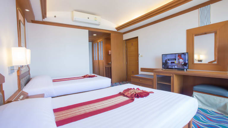 Die klimatisierten Zimmer im Asia Cha Am Hotel verfügen über Balkon oder Terrasse mit Meerblick, Teppichboden, Doppelbett oder Kingsize-Bett, sowie einen Safe und eine Minibar. Zudem sind die Zimmer mit Kühlschrank, Tee- und Kaffeezubereiterausstattung, Telefon mit Direktwahl, TV mit Satelliten-/Kabelempfang und kostenlosem Wifi ausgestattet. Die Badezimmer sind mit Dusche und Badewanne ausgestattet und bieten einen Haartrockner sowie ausreichend Handtücher. Es gibt auch Nichtraucherzimmer.