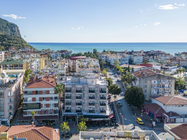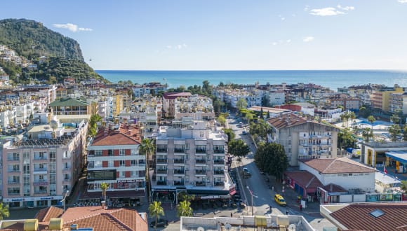 Das Hotel befindet sich direkt am Strand, in zentraler Lage in Alanya.