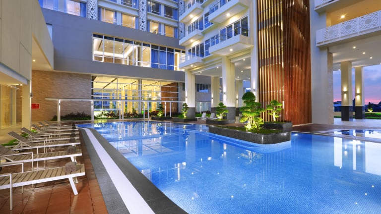 Das Aston Batam Hotel & Residence befindet sich in Batam, etwa 4 km vom Strand und dem Stadtzentrum entfernt. Die Entfernung zum Flughafen beträgt ca. 17 km und zum Fährhafen Harbour Bay sind es etwa 8 Minuten mit dem Auto.