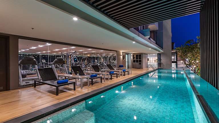Die Gäste können sich im Fitnessstudio betätigen oder die Angebote von Aerobic und im Spa nutzen. Es gibt eine Sauna für Erholung und eine Aussenpoolanlage mit Liegen, die für entspannende Momente geeignet ist. An der Poolbar werden Erfrischungsgetränke angeboten.
