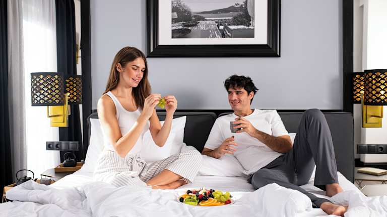 Die modernen, klimatisierten Zimmer verfügen über grosse Balkone, ein eigenes Bad mit Bademänteln und Pflegeprodukten sowie einen Flachbild-Sat-TV. Ein angenehmes Raumklima wird durch eine Heizung gewährleistet. Einige Unterkünfte bieten einen Whirlpool und eine Sitzecke. Die Zimmer sind als Familien- und Nichtraucherzimmer erhältlich und verfügen über ein Doppelbett sowie die Möglichkeit für Zustellbetten.