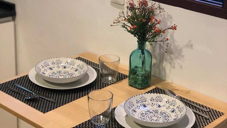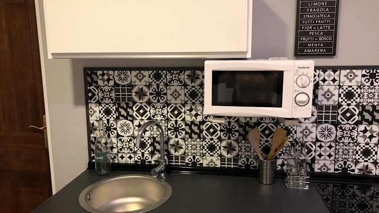 Die Ferienwohnung verfügt über ein Schlafzimmer sowie eine voll ausgestattete Küche mit Kühlschrank und Mikrowelle. Ein Badezimmer mit Badewanne oder Dusche und Haartrockner ist ebenfalls vorhanden. Handtücher und Bettwäsche werden bereitgestellt.