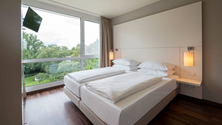 Zeitgemäßes Design und barrierefreies Interieur zeichnen die 121 unterschiedlich großen Zimmer unseres Hauses aus. Unser sympathischer Service sorgt für einen entspannenden Aufenthalt. Wer es lieber etwas ruhiger angeht, ist in unserem ansprechenden Sauna-, Fitness- und Entspannungsbereich genau richtig; die Nutzung ist im Zimmerpreis enthalten.