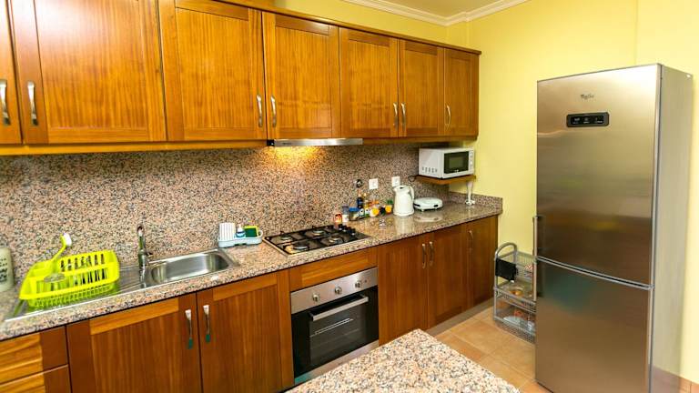 Die Ferienwohnung umfasst ein Schlafzimmer, ein Wohnzimmer mit Flachbild-TV sowie eine gut ausgestattete Küche mit Kühlschrank und Ofen. Das Badezimmer verfügt über eine Dusche. Handtücher und Bettwäsche werden bereitgestellt.