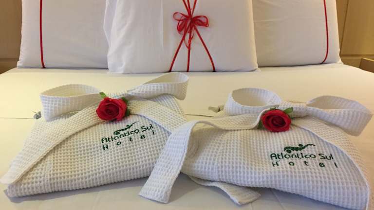 Das Hotel Atlantico Sul bietet 137 Zimmer und verfügt über einen Aufzug sowie verschiedene gastronomische Einrichtungen wie ein Restaurant, ein Café und eine Bar. Das freundliche Personal an der Rezeption ist jederzeit hilfsbereit. Serviceleistungen wie eine Gepäckaufbewahrung, ein Safe, ein 24h-Sicherheitsdienst sowie ein Shuttlebus stehen zur Verfügung. Die Unterkunft hat eine Sonnenterrasse, einen Indoor- und Outdoor-Pool sowie einen Kinderpool. Wireless Internet wird im öffentlichen Bereich kostenfrei angeboten.