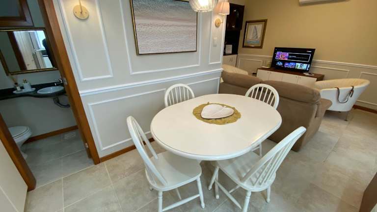 Die Ferienwohnung besteht aus 2 Schlafzimmern, einem Wohnzimmer und 2 Badezimmern, die jeweils mit einer Dusche und einem Haartrockner ausgestattet sind. Zur Ausstattung gehören zudem eine Klimaanlage und ein Flachbild-TV mit Kabelkanälen. Es gibt die Möglichkeit, in der voll ausgestatteten Küche einen Kühlschrank zu nutzen.