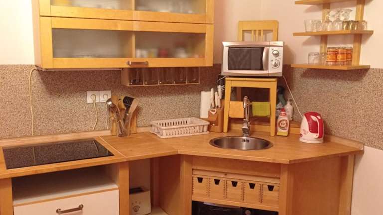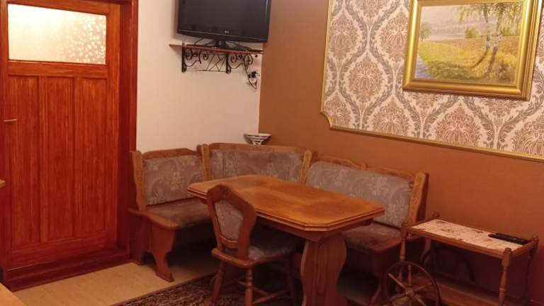 Die Ferienwohnung besteht aus einem Wohnzimmer mit einem Flachbild-TV mit Satellitenkanälen, einer voll ausgestatteten Küche mit Kühlschrank und Ofen sowie einem Badezimmer mit Dusche. Handtücher und Bettwäsche werden bereitgestellt.