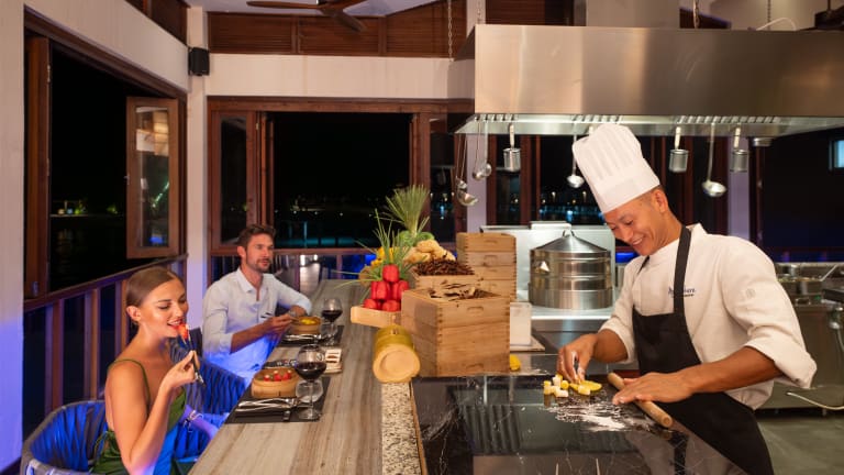 - Restaurants: 6 - Hauptrestaurant "The Spice" Öffnungszeiten: 07:00 - 10:30 Uhr, 12:00 - 14:30 Uhr, 19:00 - 22:00 Uhr Internationale Küche, Fisch/Seafood, Grill-Station, Buffet-Restaurant, auf Anfrage: Gluten-Free/Lactose-Free Produkte, Baby-Food - Spezialitätenrestaurant „SUNSET“ Öffnungszeiten: 07:30 - 10:00 Uhr, 12:00 - 17:00 Uhr und 19:00 - 22:00 Uhr. - Spezialitätenrestaurant „THE PIER SIX“ Öffnungszeiten: 07:30 - 10:00 Uhr, 19:00 - 22:00 Uhr. - Spezialitätenrestaurant „JUST VEG“ Öffnungszeiten: 12:30 Uhr - 14:30 Uhr, 19:00 Uhr - 22:30 Uhr - Ceylon Bliss - Sri Lankanisches Street Food Restaurant. Öffnungszeiten: 17:00 - 21:00 Uhr, alle Tage außer Mittwoch und Sonntag. - Teppanyaki at Pier Six - Authentische japanische Feinschmeckerküche. 2 Sitzplätze: 19:00 Uhr - 21:00 Uhr und 21:00 Uhr - 23:00 Uhr. - The Liquid - Öffnungszeiten: 09:00 Uhr - 00:00 Uhr