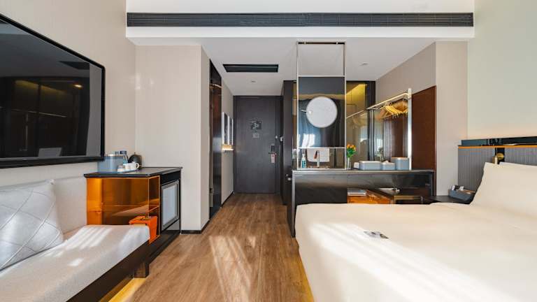 Die Unterkunft Atour S Hotel Wuxi Nanchang Street befindet sich in Wuxi, weniger als 46 km vom Tiger-Hügel und 48 km vom Hanshan Temple entfernt. Bei einem Distanz von 50 km liegt der Liu-Garten. In der Nähe finden sich zudem interessante Sehenswürdigkeiten wie der Nanchan Temple of Wuxi (1,2 km) und das Wuxi Museum (1,3 km). Der nächstgelegene Flughafen ist der Flughafen Wuxi, welcher sich 16 km von der Unterkunft entfernt befindet.