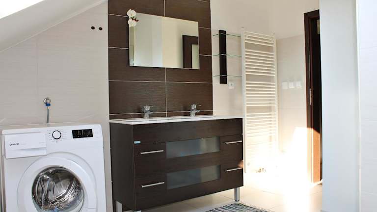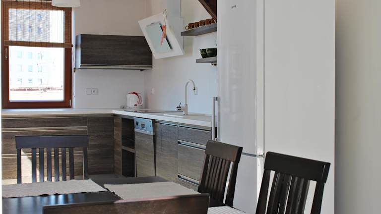Die Ferienwohnung umfasst eine Fläche von 110 m2 und besteht aus 2 Schlafzimmern, einem Wohnzimmer sowie einer voll ausgestatteten Küche mit Kühlschrank und Kaffeemaschine. Das Badezimmer beinhaltet sowohl eine Dusche als auch eine Badewanne.