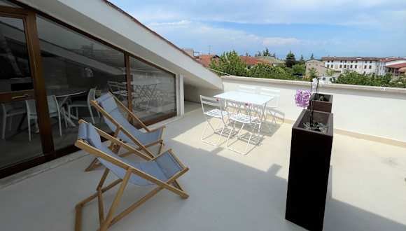Attico Lilium bietet eine Ferienwohnung mit einem Tennisplatz und einer Vielzahl von Wassersportmöglichkeiten vor Ort. Die Unterkunft ist klimatisiert und bietet eine heimelige Atmosphäre.