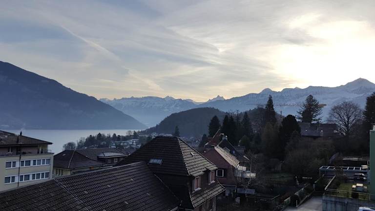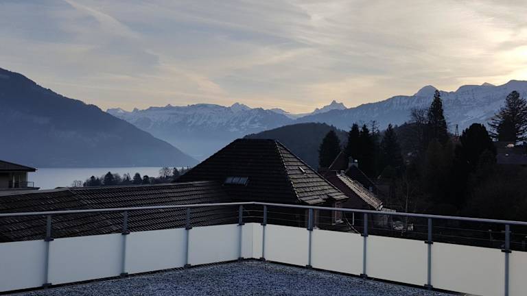 Die Attika Wohnung Spiez besticht durch ihren schönen Stadtblick und bietet Übernachtungsmöglichkeiten mit einer Terrasse und einer Veranda / Patio. Die Unterkunft ist ideal für Ferien und lässt keine Wünsche offen.