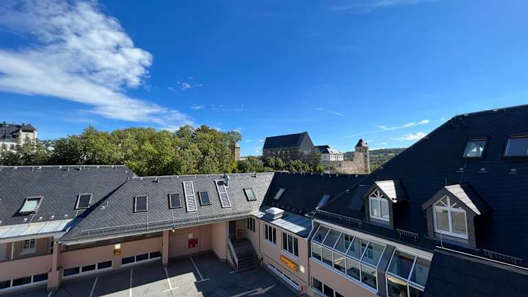 Das attraktive Appartement im Stadtzentrum Plauen bietet eine komfortable Übernachtungsmöglichkeit mit Zugang zu einem Balkon und einem Lift. Es handelt sich um eine heimelige Unterkunft inmitten einer lebhaften Stadt.