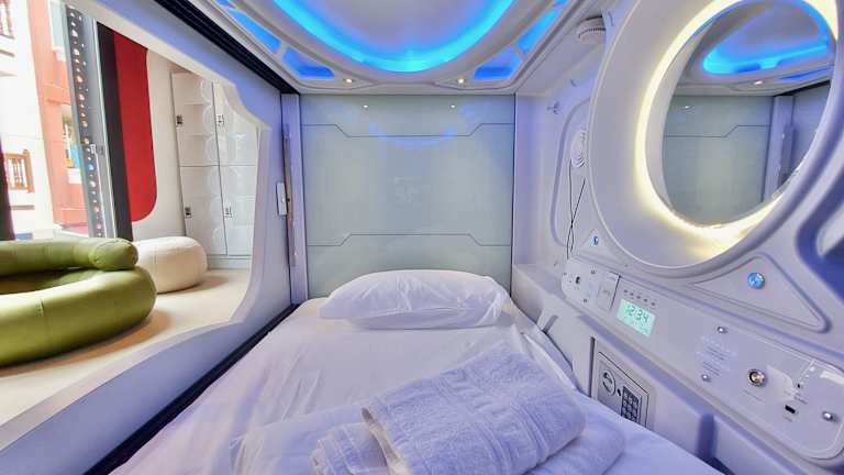Das Atypicap Capsule Hostel bietet eine helle und freundliche Atmosphäre. Die Unterbringung umfasst eine Rezeption, die rund um die Uhr besetzt ist, eine Gemeinschaftslounge, eine Terrasse, ein Restaurant sowie eine Bar. Für Gäste mit eingeschränkter Mobilität stehen rollstuhlgerechte Einrichtungen und ein Lift zur Verfügung.