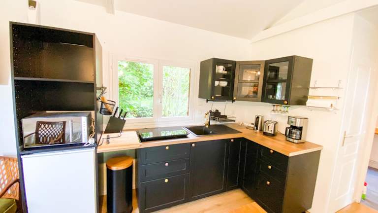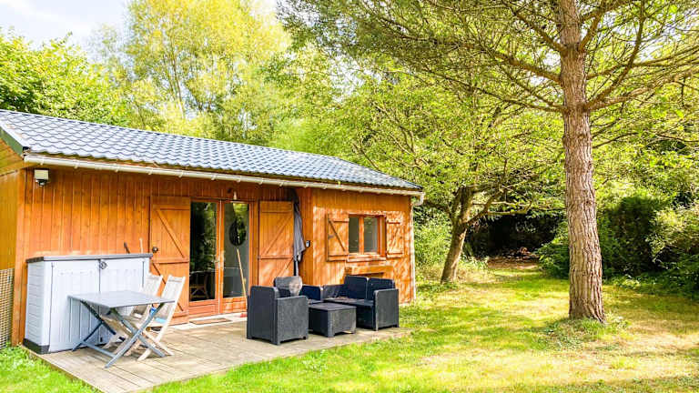 Das Chalet bietet Übernachtungsmöglichkeiten mit einem heimeligen Ambiente. Es ist ausgestattet mit einer Terrasse, einem Schlafzimmer, einem Wohnzimmer sowie einer gut ausgestatteten Küche. Kostenlose Fahrräder stehen zur Verfügung und Gäste können die Grillmöglichkeiten im Garten nutzen.