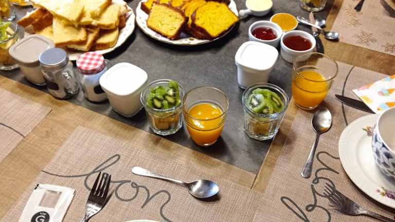 Jeden Morgen wird ein kontinentales Frühstück in der Unterkunft AU COEUR DU MARAIS serviert. Die Verpflegung ist einfach und bietet eine gute Grundlage für den Tag.