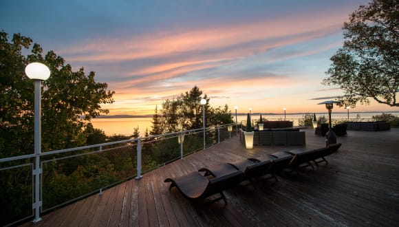Das Hotel Auberge de la Pointe in Rivière-du-Loup bietet seinen Gästen eine elegante Unterkunft mit Blick auf den Sankt-Lorenz-Strom. Hier können Sie sich auf ein stilvolles Restaurant, Wellnessanwendungen und komfortable Zimmer mit kostenlosem WLAN freuen. Das Hotel verfügt über einen Innenpool, einen Whirlpool, einen Fitnessraum und einen Conciergeservice. Das Restaurant L'Espadon Dining Room ist bekannt für seine Meeresfrüchte und bietet einen großartigen Blick auf den Fluss. Die Lage des Hotels ist ideal, da es nur eine kurze Fahrt von der Innenstadt von Rivière-du-Loup entfernt ist.