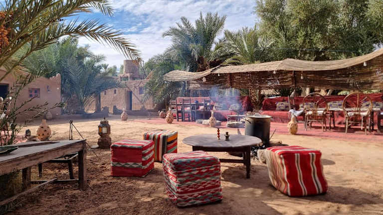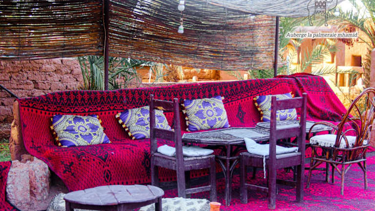 Die Auberge la Palmeraie befindet sich in M’hamid El Ghizlane, in der Provinz Zagora. Es bietet eine ruhige und entspannte Atmosphäre, ideal für Gäste, die eine Auszeit in der Natur suchen.