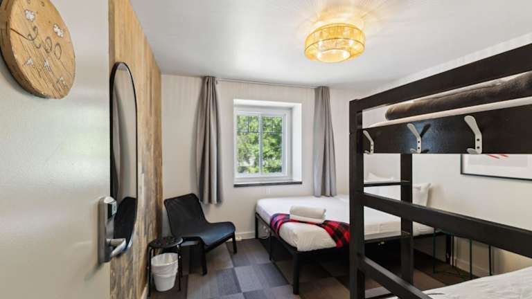 Das Auberge Manitonga bietet eine Vielzahl an Übernachtungsmöglichkeiten, darunter private Zimmer, Familienzimmer und Betten in einem Gemeinschaftsraum. Die bequemen und sauberen Einrichtungen umfassen Gemeinschaftsbäder, eine Gemeinschaftsküche, ein Esszimmer, eine Bar sowie einen einladenden Aussenbereich mit Feuerstelle. Es gibt zudem Zimmer mit eigenem Bad im benachbarten Komplex Suites du Lac Moore. Das Hotel ist rauchfrei und legt Wert auf eine angenehme Atmosphäre.