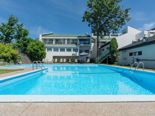 Zur Freizeitgestaltung steht den Gästen ein saisonal geöffneter Aussenpool zur Verfügung, ausgestattet mit Liegestühlen und Sonnenschirmen für erholsame Stunden.