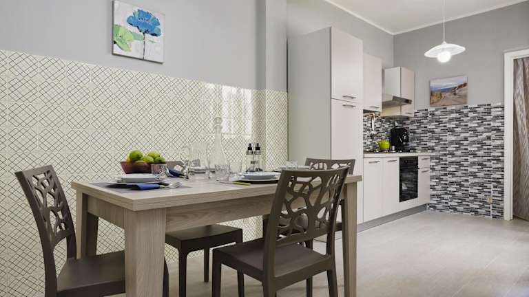 Die Ferienwohnung besteht aus zwei Schlafzimmern, einem Wohnzimmer, einer voll ausgestatteten Küche mit Kühlschrank und Kaffeemaschine sowie einem Badezimmer mit Bidet und Dusche. Handtücher und Bettwäsche werden bereitgestellt.