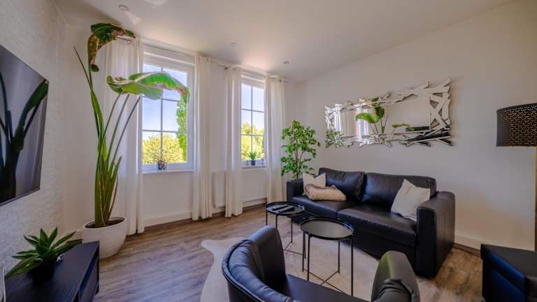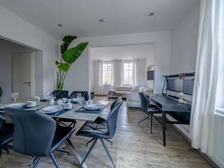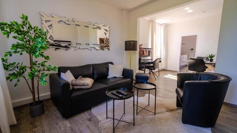 Die Wohnung verfügt über zwei Schlafzimmer und ein Wohnzimmer mit einem Flachbild-TV, der Satellitenkanäle empfängt. Eine voll ausgestattete Küche mit Kühlschrank und Geschirrspüler sowie ein Badezimmer mit Dusche sind ebenfalls vorhanden. Handtücher und Bettwäsche werden bereitgestellt.