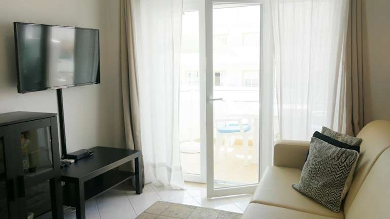 Die Ferienwohnung ist klimatisiert und besteht aus 2 Schlafzimmern, einem Wohnzimmer und einer voll ausgestatteten Küche mit Kühlschrank und Kaffeemaschine. Es steht ein Badezimmer mit Bidet und Dusche zur Verfügung. Handtücher und Bettwäsche werden bereitgestellt. Eine Terrasse ist ebenfalls vorhanden.
