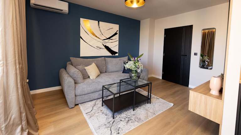 Diese Ferienwohnung mit Klimaanlage besteht aus 1 Schlafzimmer, einem Wohnzimmer und einer voll ausgestatteten Küche, die mit einem Kühlschrank und einer Kaffeemaschine ausgestattet ist. Ein Badezimmer mit Dusche und kostenlosen Pflegeprodukten ist ebenfalls vorhanden. Handtücher und Bettwäsche werden zur Verfügung gestellt.