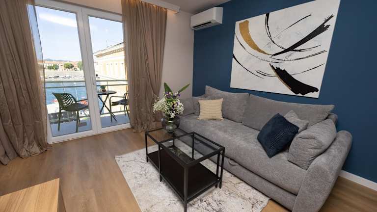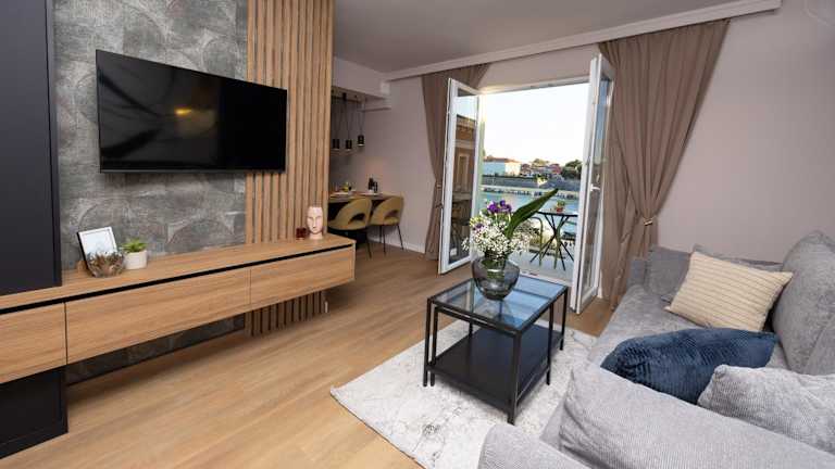 Aurum Ponte Deluxe ist eine heimelige Ferienwohnung, die über einen Balkon verfügt. Die Unterkunft bietet den Gästen eine entspannte Atmosphäre und einen Ausblick auf die Stadt sowie das Meer. Kostenloses Wifi steht den Gästen zur Verfügung.