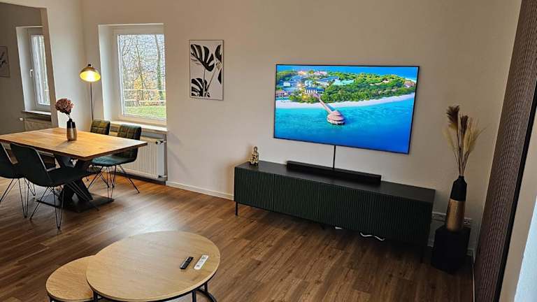 Die Ferienwohnung verfügt über zwei Schlafzimmer und ein Wohnzimmer. Zudem bietet sie eine gut ausgestattete Küche, die den Gästen die Möglichkeit gibt, eigene Mahlzeiten zuzubereiten. Ein Flachbild-TV sorgt für Unterhaltung.