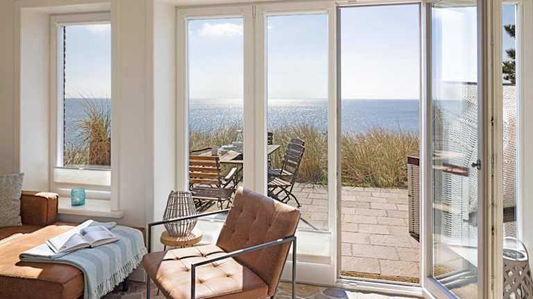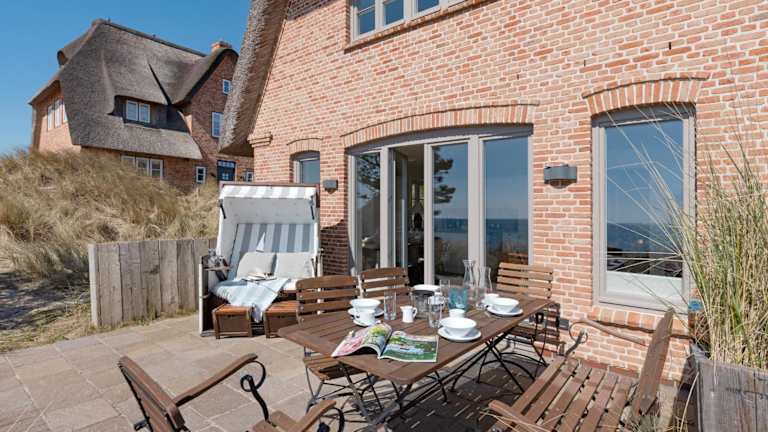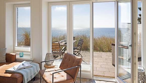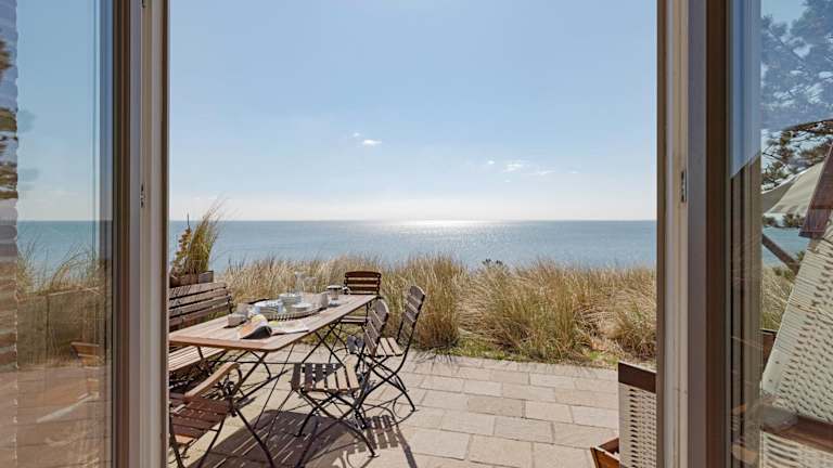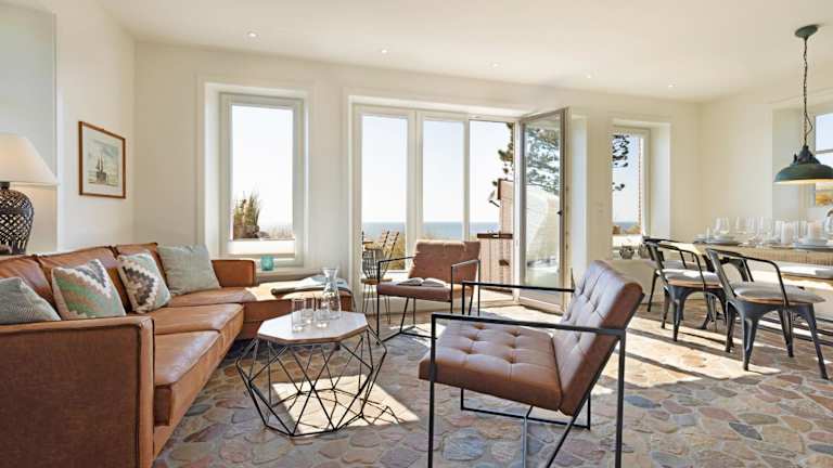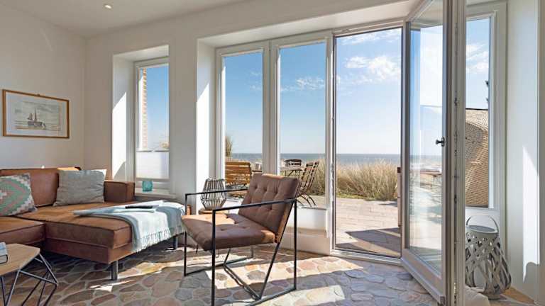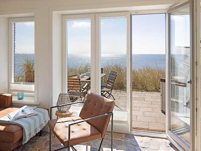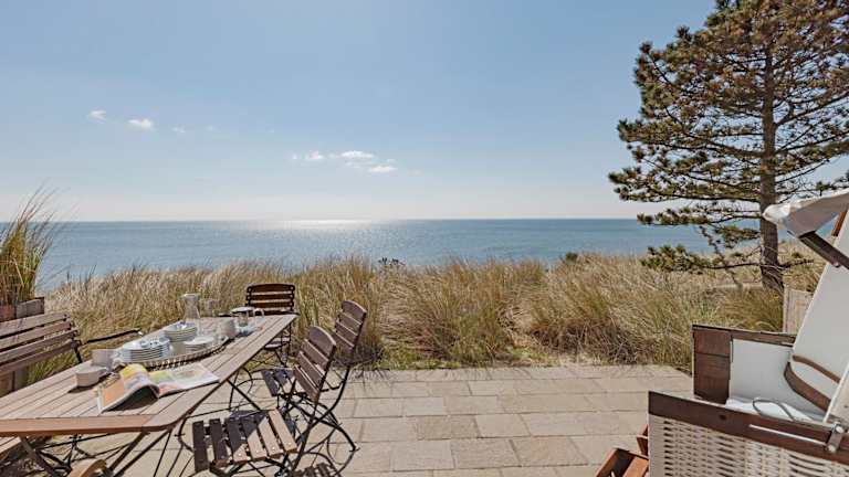 Ausblick - Momme ist eine elegante Ferienunterkunft direkt am Strand, die eine heimelige Atmosphäre mit modernem Komfort vereint. Die Unterkunft verfügt über einen Garten sowie eine Terrasse mit Meerblick und bietet Platz für eine erholsame Zeit. Die Nutzung der Sauna gewährleistet zusätzlichen Entspannung.