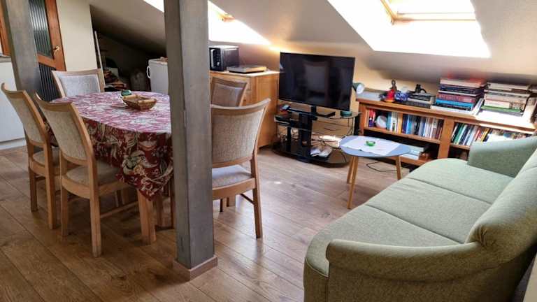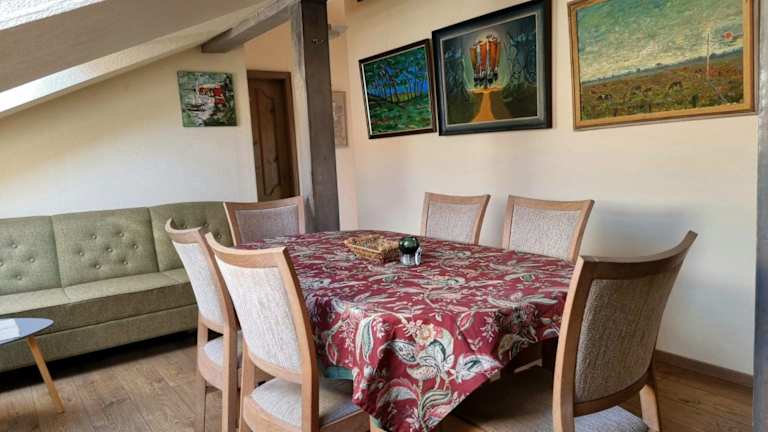 Aušras Mansarde bietet Übernachtungsmöglichkeiten in einer heimeligen Umgebung mit einem Garten, einer Gemeinschaftslounge und einer Gemeinschaftsküche. Kostenloses Wifi ist in der gesamten Unterkunft verfügbar. Ein Grill steht ebenfalls zur Verfügung.