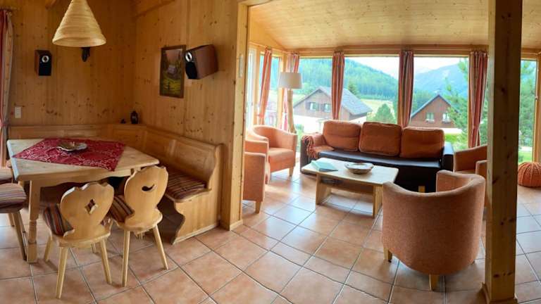 Das Chalet verfügt über eine voll ausgestattete Küche mit Kühlschrank, Geschirrspüler und Ofen. Es bietet ein Wohnzimmer mit Sitz- und Essbereich, fünf Schlafzimmer sowie zwei Badezimmer mit Bidet und Dusche. Zur technischen Ausstattung gehören ein Flachbild-TV mit Satellitenkanälen, ein Blu-ray-Player, ein DVD-Player und ein CD-Player.