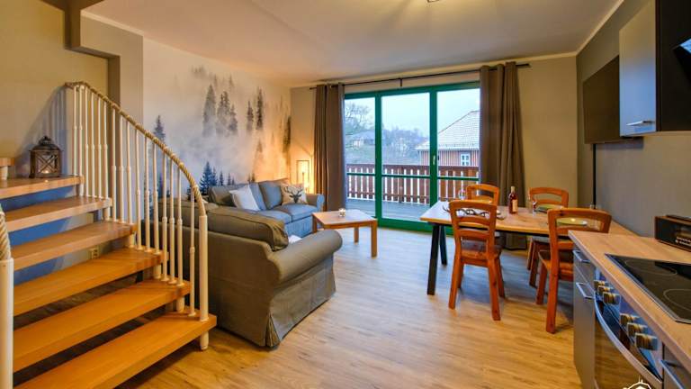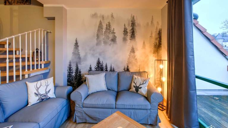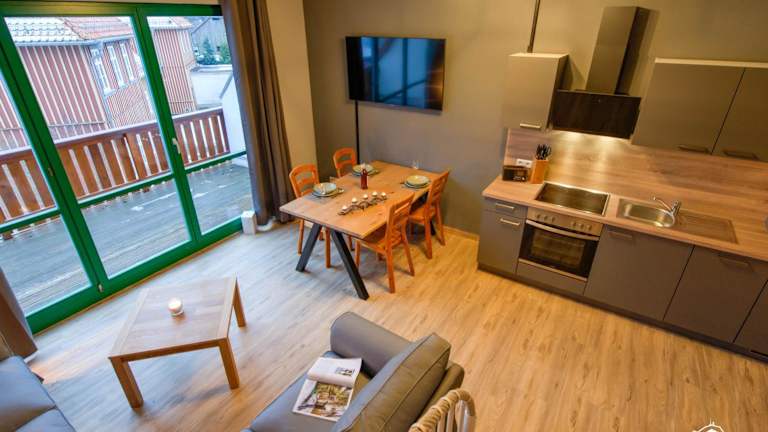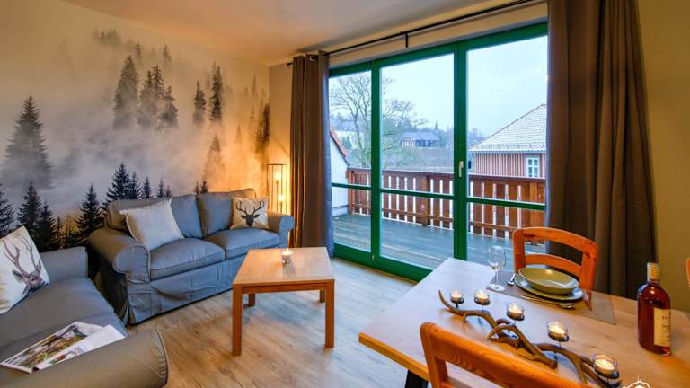 Die Unterkunft Auszeit-im-Harz Haus 5 Wohnung 33 bietet einen heimeligen Balkon sowie einen Garten und eine kostenlose Parkiermöglichkeit.