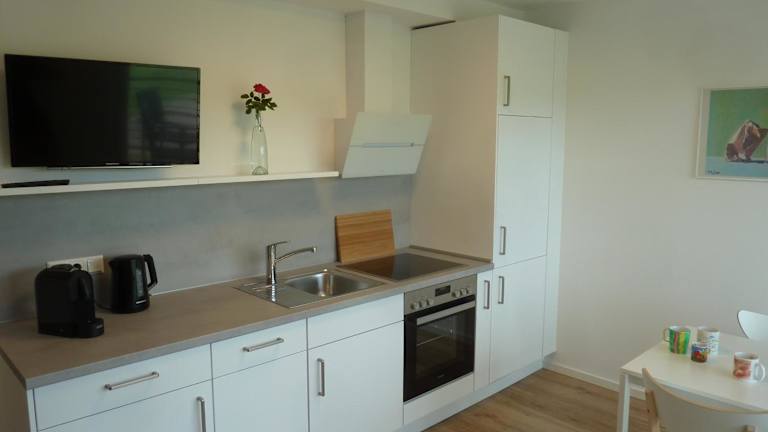 Die Ferienwohnung umfasst ein Schlafzimmer, ein Wohnzimmer sowie ein Badezimmer mit Dusche und kostenlosen Pflegeprodukten. Handtücher und Bettwäsche sind in der Unterkunft vorhanden. Die voll ausgestattete Küche bietet die Möglichkeit, eigene Mahlzeiten zuzubereiten.