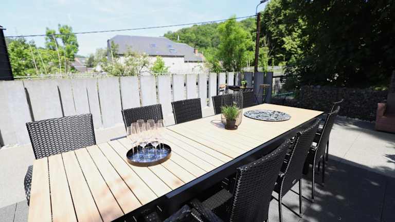 Aux Berges du Bocq ist ein gemütliches Ferienhaus mit Balkon und Blick auf die Stadt. Die Unterkunft verfügt über eine Terrasse und kostenlose Parkiermöglichkeiten.