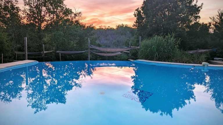 Das Aux Lodges du Mas de Nadal bietet Ihnen einen Außenpool, der perfekt ist, um sich an warmen Tagen abzukühlen und zu entspannen. Das große Grundstück der Unterkunft bietet auch die Möglichkeit für Spaziergänge oder Wanderungen in der Natur. Erkunden Sie die Umgebung und entdecken Sie die Schönheit der Region Midi-Pyrénées.