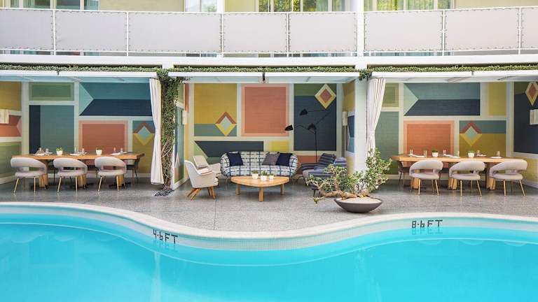Im Hotel gibt es ein elegantes Restaurant, das kalifornische Interpretationen der europäischen und amerikanischen Küche serviert. Die Gäste können ihre Mahlzeiten im Innen- oder Aussenbereich oder in einer privaten Cabana am Pool geniessen. Das Frühstück sowie Mittag- und Abendessen werden in Menüform angeboten. Zusätzlich lädt eine Bar zu erfrischenden Getränken ein.