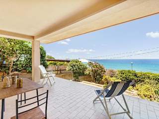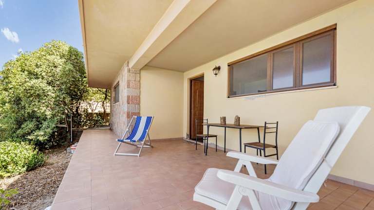 Das Ferienhaus Aventino Costa Verde - Gutturu besticht durch eine heimelige Veranda und einen Patio mit herrlichem Meerblick. Ein einladender Garten sowie Möglichkeiten zum Grillieren sind ebenfalls vorhanden.