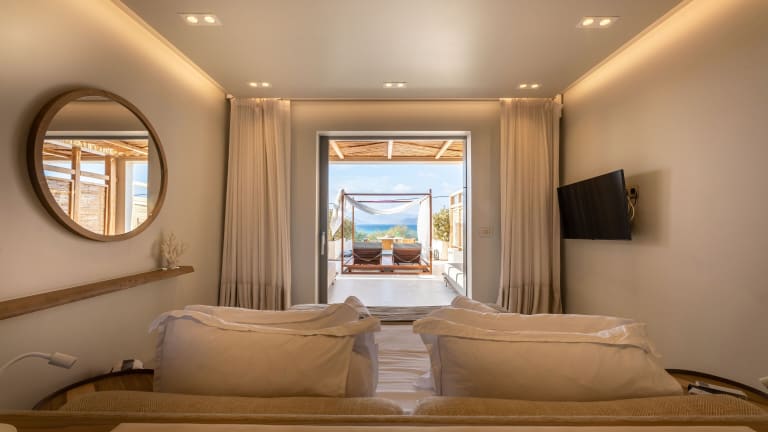 Jedes Zimmer in Avgoustos Suites Naxos ist mit einer Klimaanlage, einem Schreibtisch, einer Terrasse mit Meerblick sowie einem eigenen Badezimmer ausgestattet. Die Gästezimmer verfügen zudem über einen Flachbild-TV, Bettwäsche, Handtücher, einen Kleiderschrank und eine Kaffeemaschine.