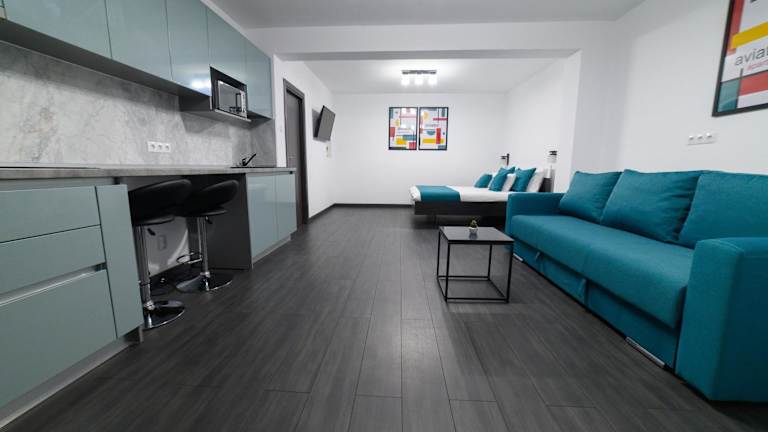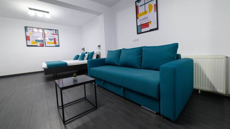 Das Aviator Apartament - Business Class Confort - Luxury bietet ein komfortables und stilvolles Apartment mit einer Vielzahl von Annehmlichkeiten. Das klimatisierte Apartment verfügt über ein gemütliches Schlafzimmer, in dem die Gäste sich ausruhen können. Der Flachbild-Kabel-TV sorgt für Unterhaltung und der Essbereich bietet Platz für gemeinsame Mahlzeiten. Die voll ausgestattete Küche mit Kühlschrank ermöglicht es den Gästen, ihre eigenen Mahlzeiten zuzubereiten. Das geräumige Wohnzimmer lädt zum Entspannen ein. Kostenloses WLAN ist im gesamten Apartment verfügbar.