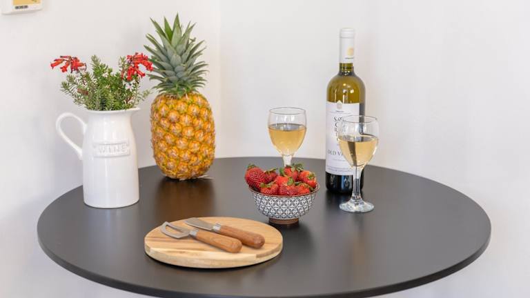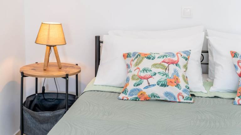 Die Ferienwohnung im Erdgeschoss umfasst 1 Schlafzimmer, eine gut ausgestattete Küchenzeile mit Kühlschrank und Mikrowelle, ein Wohnzimmer sowie einen Flachbild-TV. Handtücher und Bettwäsche werden zur Verfügung gestellt.