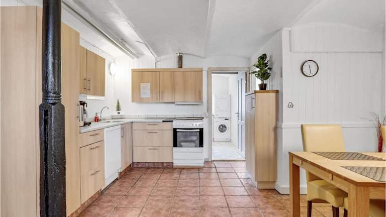Die Unterkunft verfügt über eine voll ausgestattete Küche mit einem Kühlschrank und einem Geschirrspüler, um Selbstversorgern eine angenehme Erfahrung zu bieten. Es sind keine spezifischen Informationen zu weiteren Verpflegungsmöglichkeiten vorhanden.