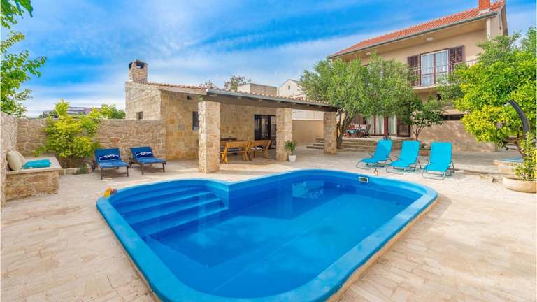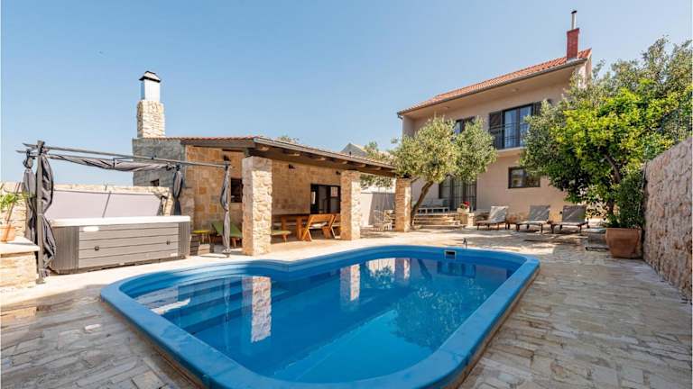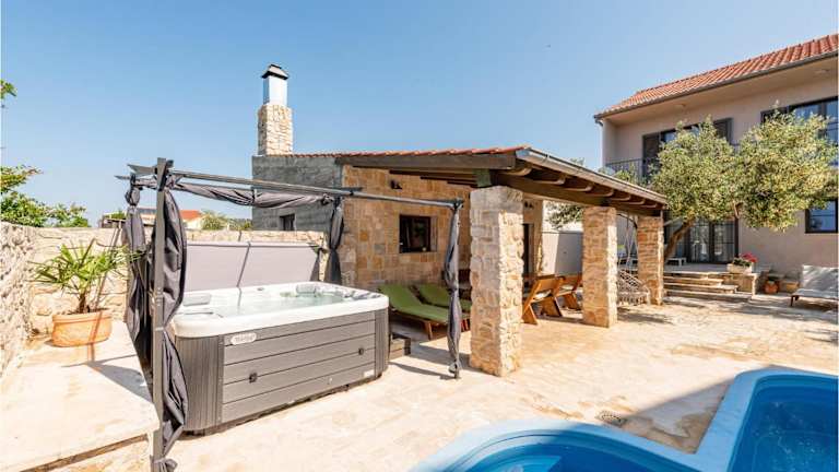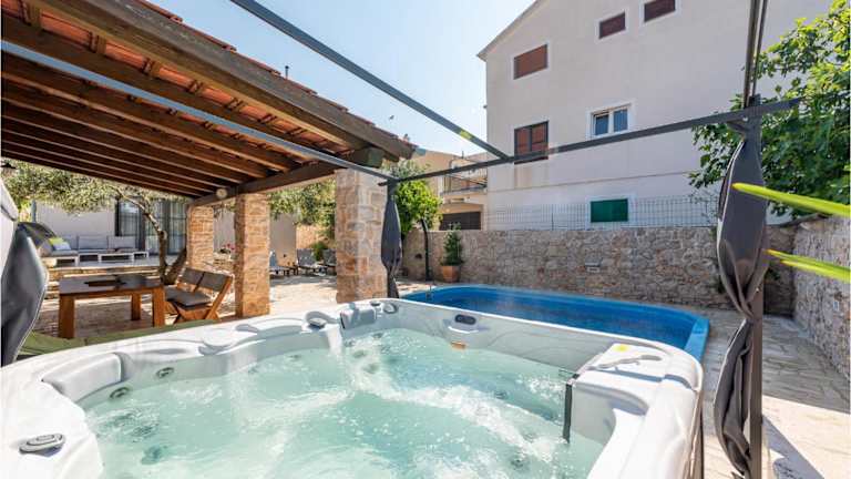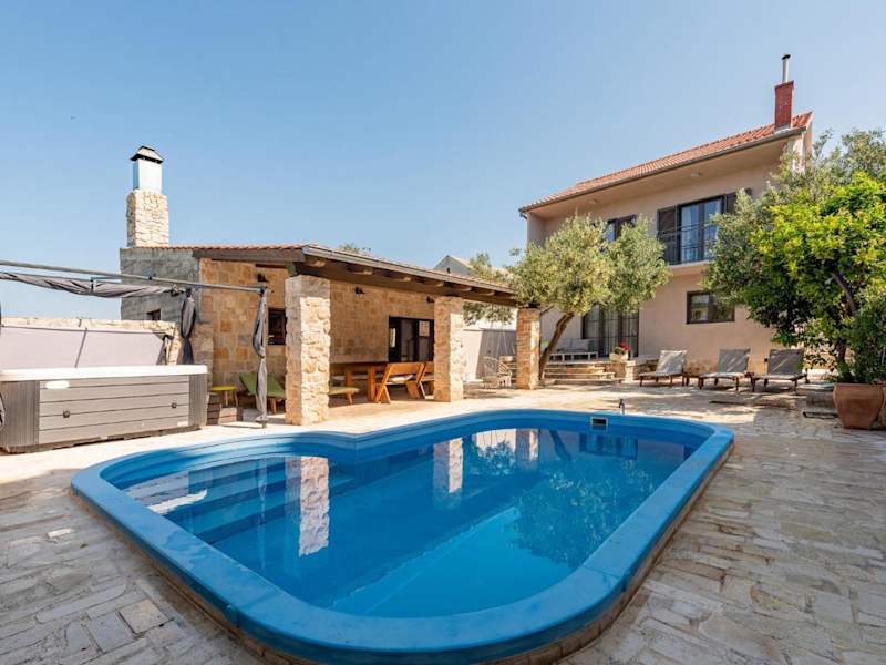 Die Unterkunft Awesome Home In Betina bietet ein heimeliges Ferienhaus mit eigenem Pool und Zugang zu einer Sonnenterrasse. Zudem stehen den Gästen ein Whirlpool und ein Aussenpool zur Verfügung. Das Ferienhaus ist klimatisiert und verfügt über 4 Schlafzimmer, ein Wohnzimmer sowie eine voll ausgestattete Küche, um den Gästen Bequemlichkeit zu bieten. Die Unterkunft ist für Nichtraucher eingerichtet und erlaubt die Mitnahme von Haustieren.